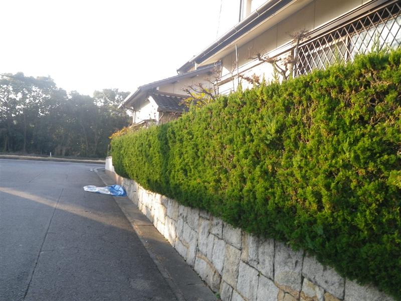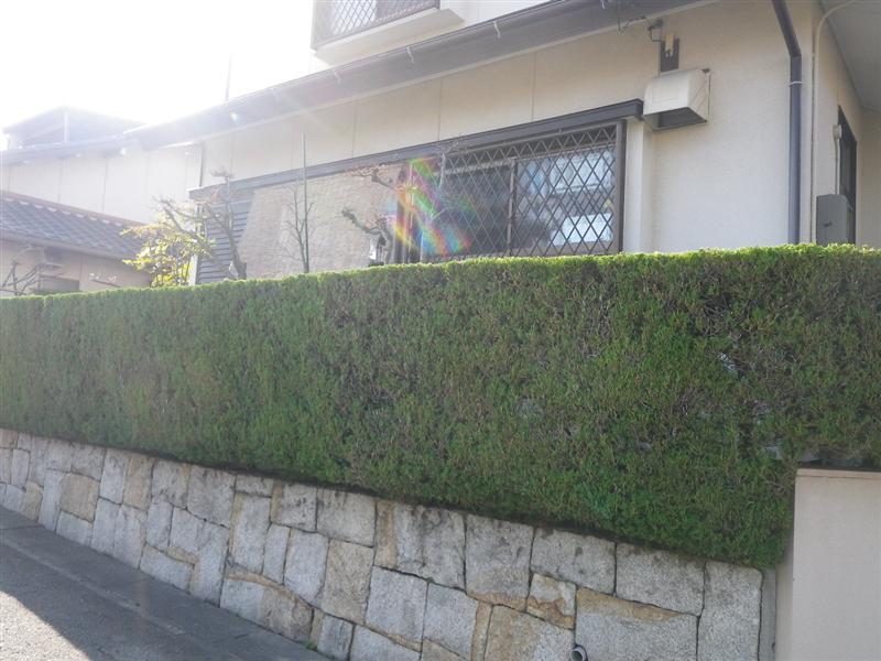 キンモクセイの垣根 カイズカイブキ・クロガネモチの剪定です。