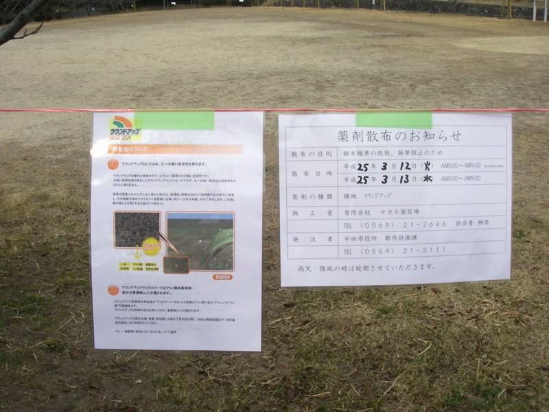 除草剤散布に伴い立ち入り禁止措置を行いました。