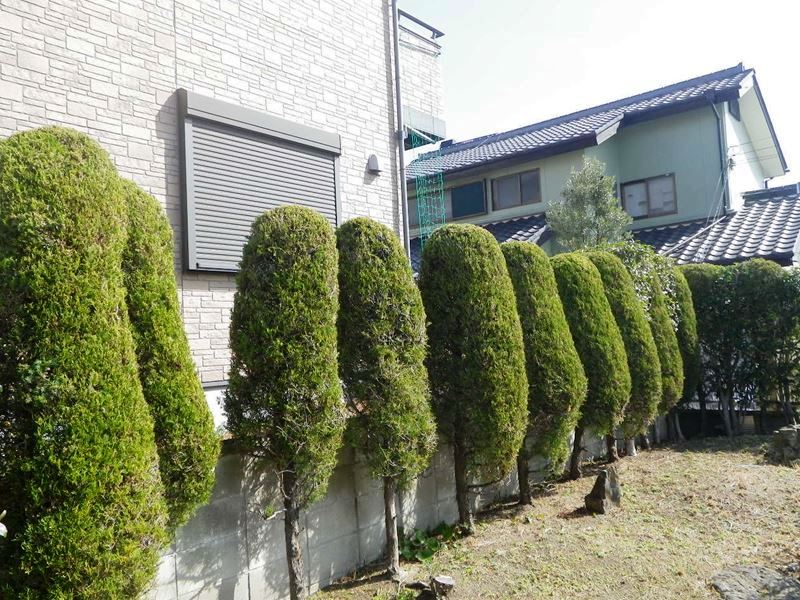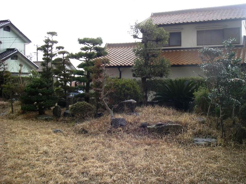 マツ、クロガネモチなど数種類の庭木が植えてありました。