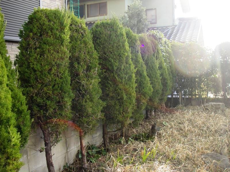 カイズカイブキは隣の木と重ならないように円柱型に剪定しました。