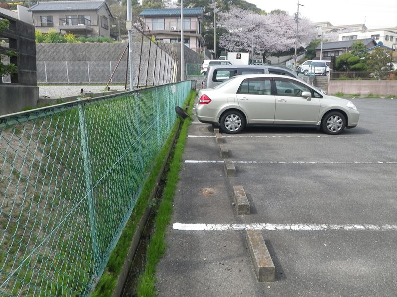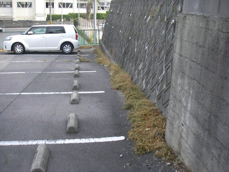 駐車場の雑草に除草剤(ラウンドアップ)散布を行います。