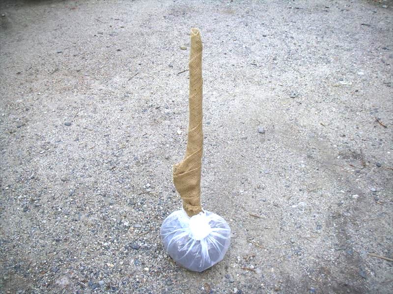 他の荷物が汚れないようにビニール袋で鉢を包みます。