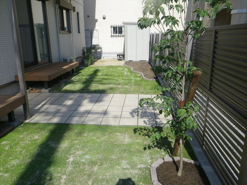 あま市で芝張・レンガ・花壇づくり・ポーチを作成しました。