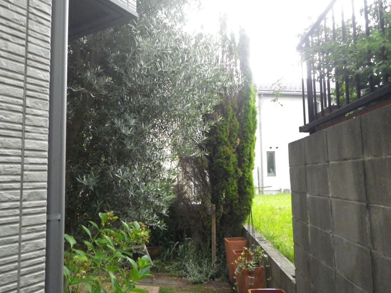 伐採作業着手前です。 ゴールドクレストが半枯れになったため伐採します。