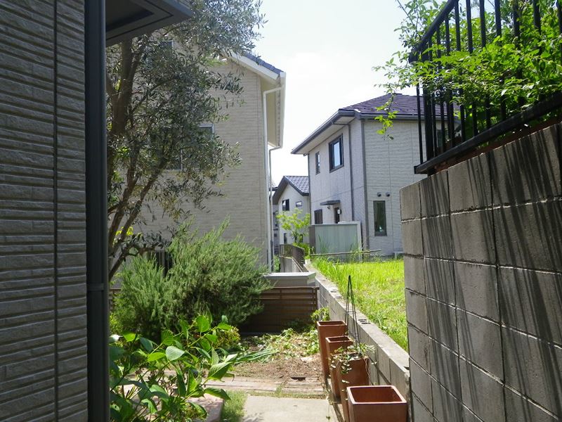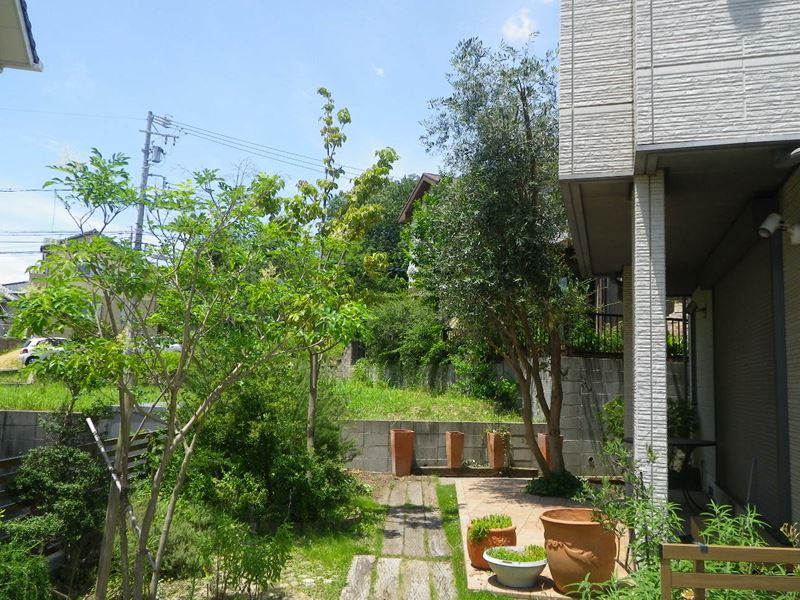 建物にあたる部分を強めに剪定しています。