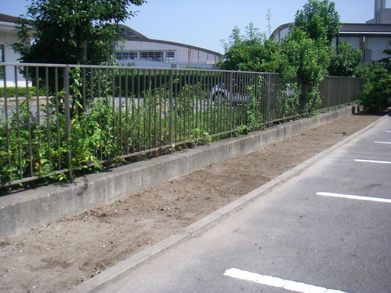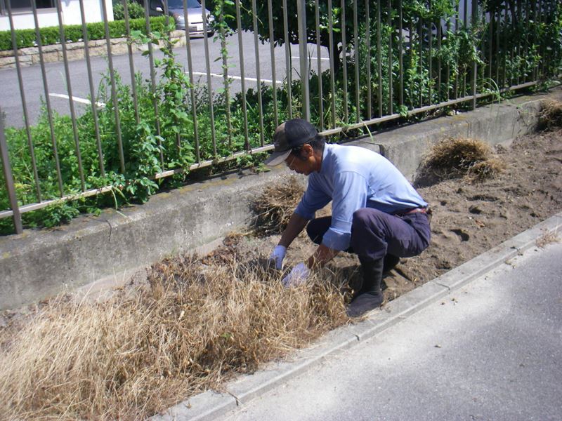 芝を張る前に枯れ草を取り除き整地を行います。