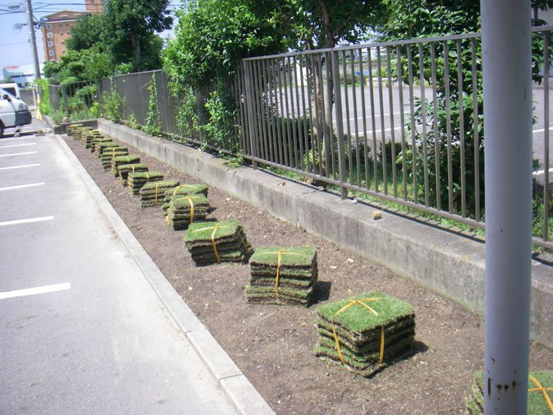 駐車場に芝張りをしました。