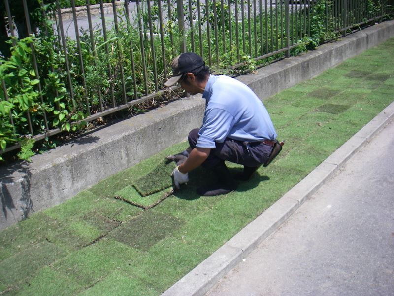 芝張りを行う場所によっては、芝生を切るなどをして調整します。