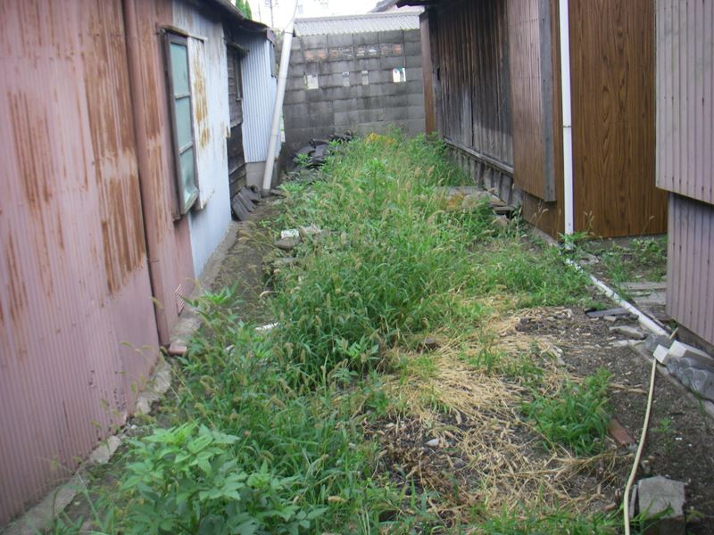 奥から順に除草剤を散布しています。雑草が多いのでしっかり散布します。