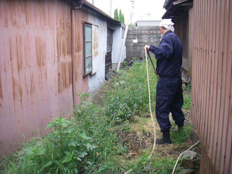 隅々まで除草剤を散布して雑草を根までしっかり枯らします。