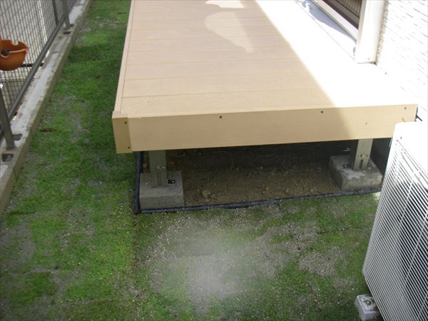 これがないと芝生がウッドデッキの下にも広がっていきます。