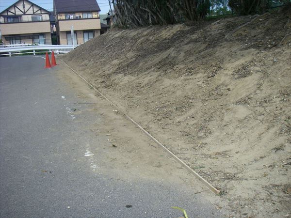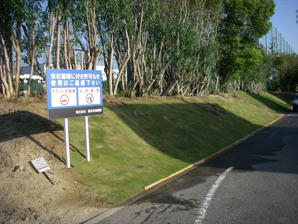 芝生を張ることで、土砂が流れるのを防いでいます。
