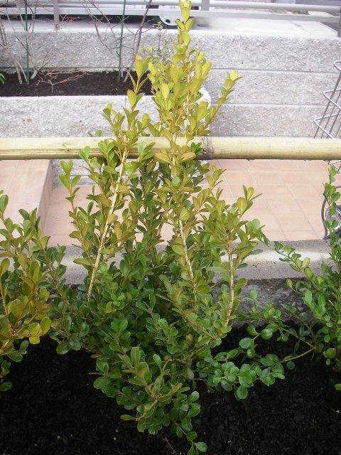 低木はボックスウッドといいまして、ツゲの仲間です。