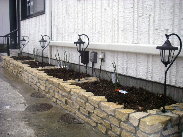 花壇を改良して、駐車場が暗いので、ライトを付けました。