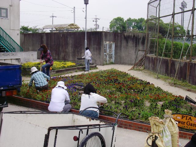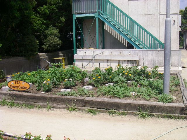 PTAの事業で夏花壇の準備をしました。