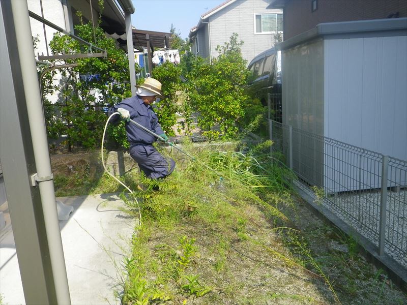 今回は除草剤の散布・散布できないところは塗布をしています。