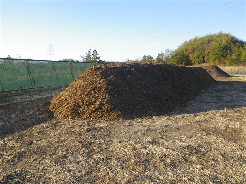 年末に刈り取った芝生と堆肥化したバークマルチを混合しています。