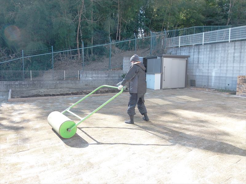 » » 芝張の後にローラーをかけました。