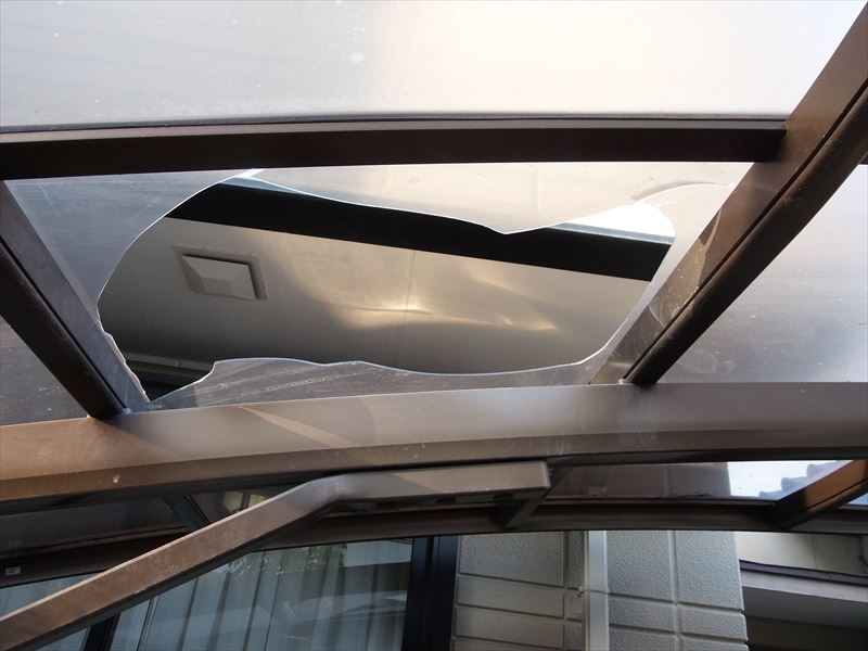 屋根の雪がカーポートに落ちて、大きな穴が開きました。