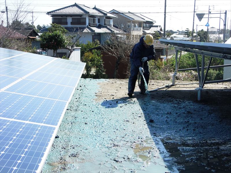 吹付の液には水と種・肥料・展着剤などが入っています。