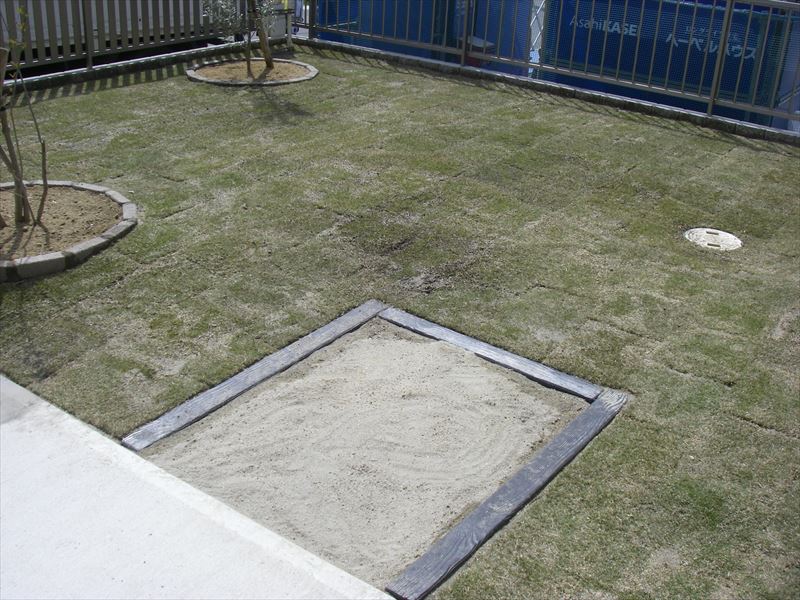 砂場はTOYO(東洋工業)さんのコンクリート製の枕木を使っています。
