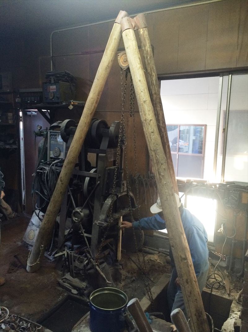 Home » 作業事例 » » 三又とチェーンブロックで機械の修理のお手伝いです。