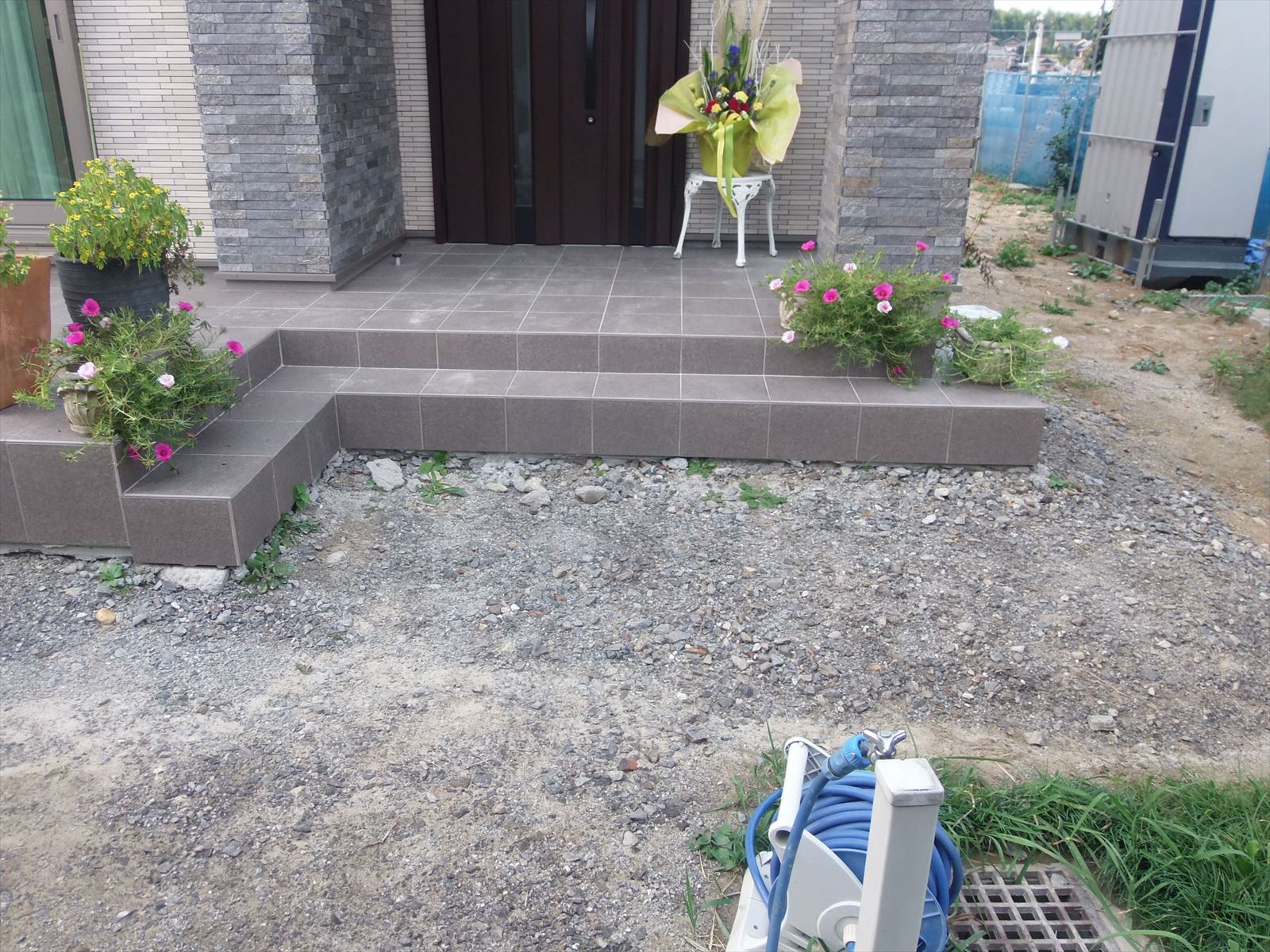 ポーチとアプローチの段差がありましたので、ポーチ タイル部分を増設しました。