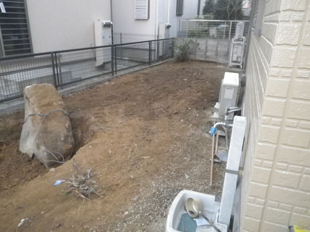 樹木・飛石・砂利など撤去して下地を作りました。