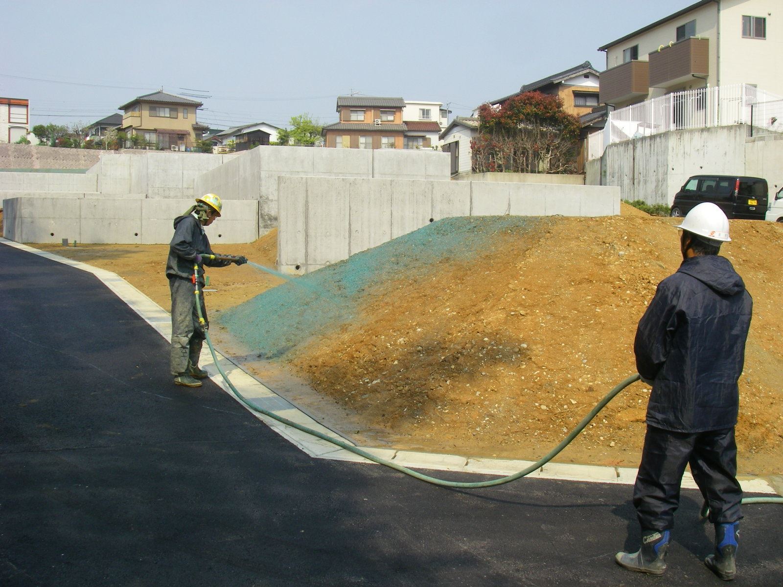 ガーデニング・庭作り・芝生・樹木・砂利販売なら庭園アドバイザーの当社へ│名古屋・知多・半田│ » 法面の種子吹付をしました。