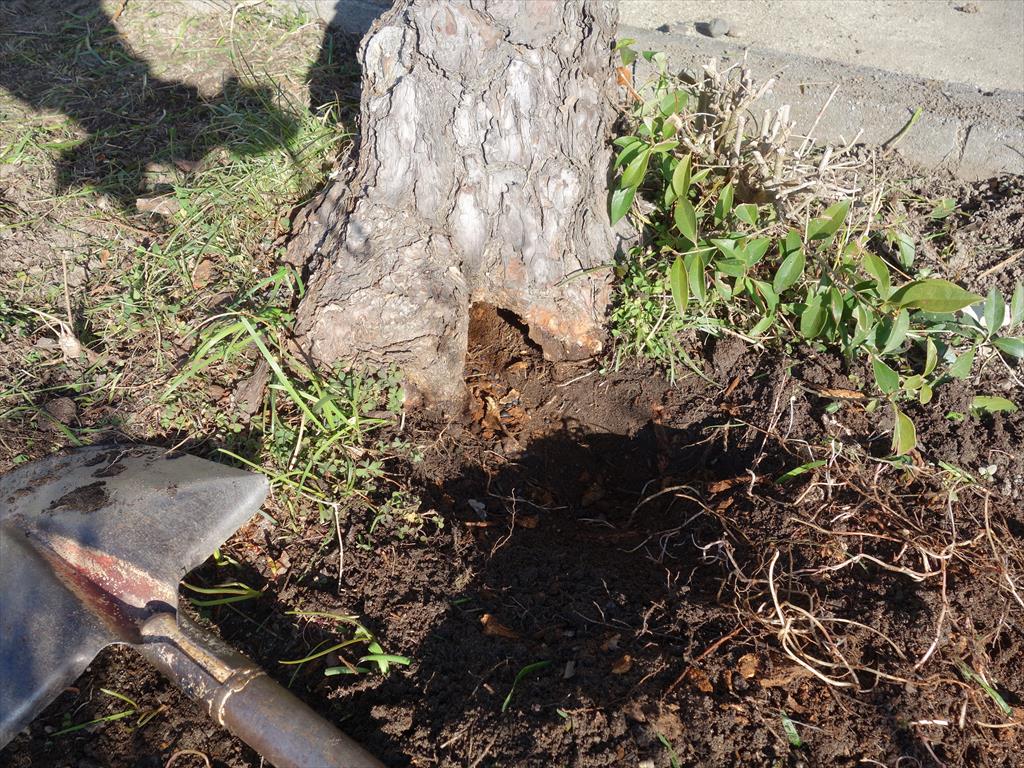 根本の草取りをしたら、根本(幹)に大きな穴が開いて腐りが入っていました。