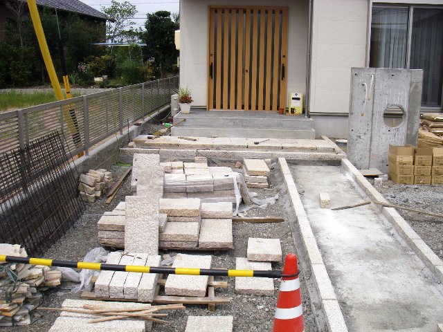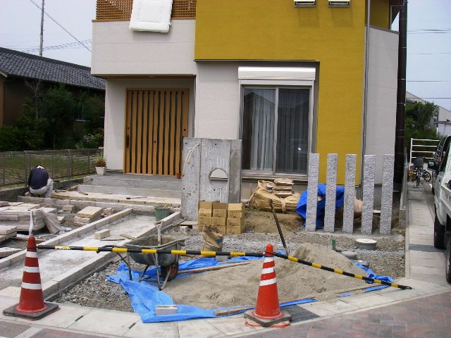 駐車場のスリットにはタマリュウとバークマルチでまとめました。