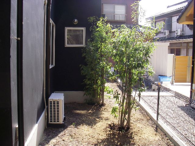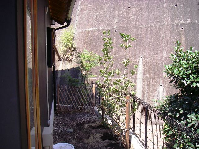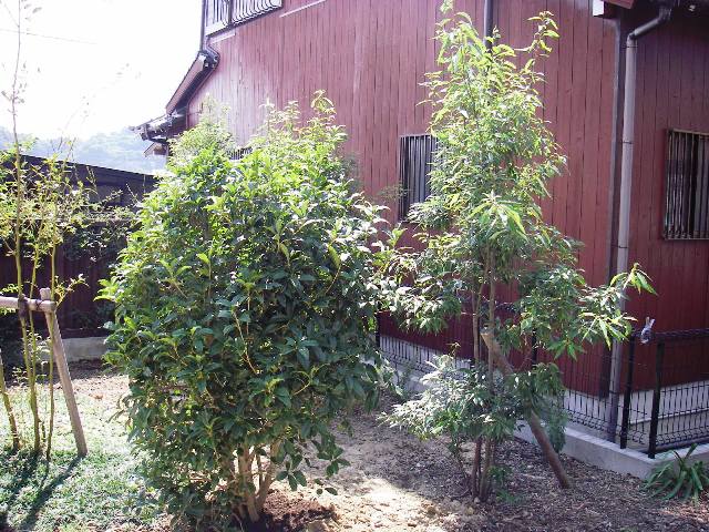 ギンモクセイを新規で植栽して、シラカシの株立を移植しました。