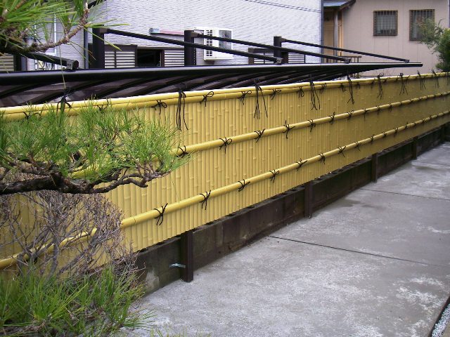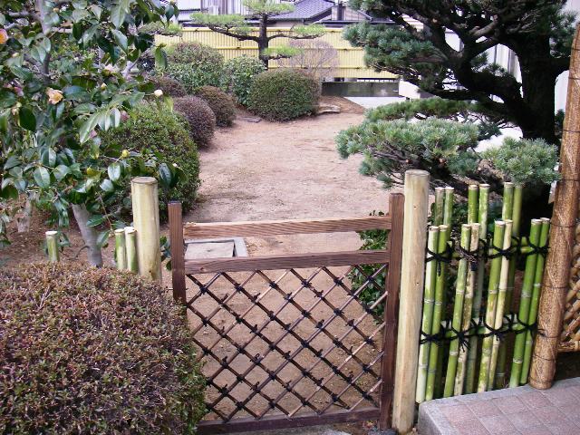 四ッ目垣、袖垣、建仁寺垣、枝折戸を設置しました。