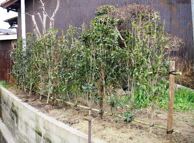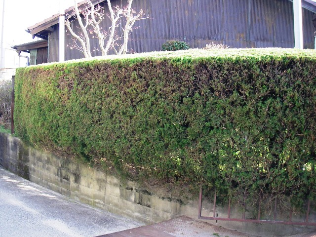 カイズカイブキの生垣をキンモクセイに植え替えました。