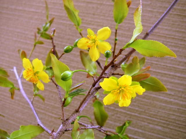 黄色の花で秋にはミッキーマウスに似た?実をつけてくれます。