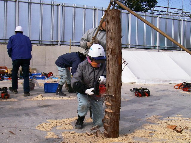 女性の会員も上手にチェンソーを使っていました。