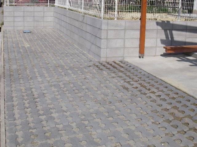 地面を15cmすきとり、砕石(石を粉砕したもの)を敷き