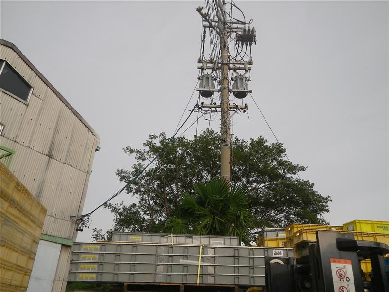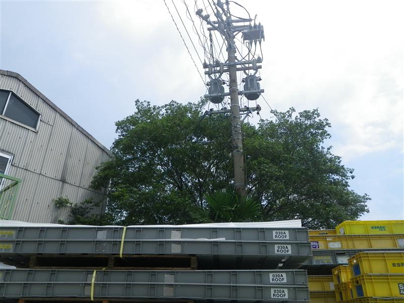 倉庫や電線に接触している枝を剪定しました。