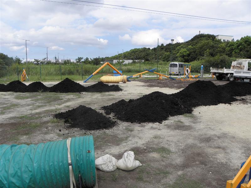 犬を訓練するドックス知多(合)さんにバークマルチ(粗い物)を配達しました。