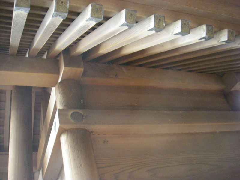 支柱に当たる部分に杉皮を入れて結束しています。