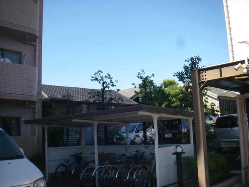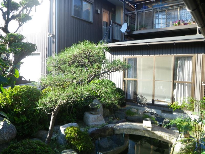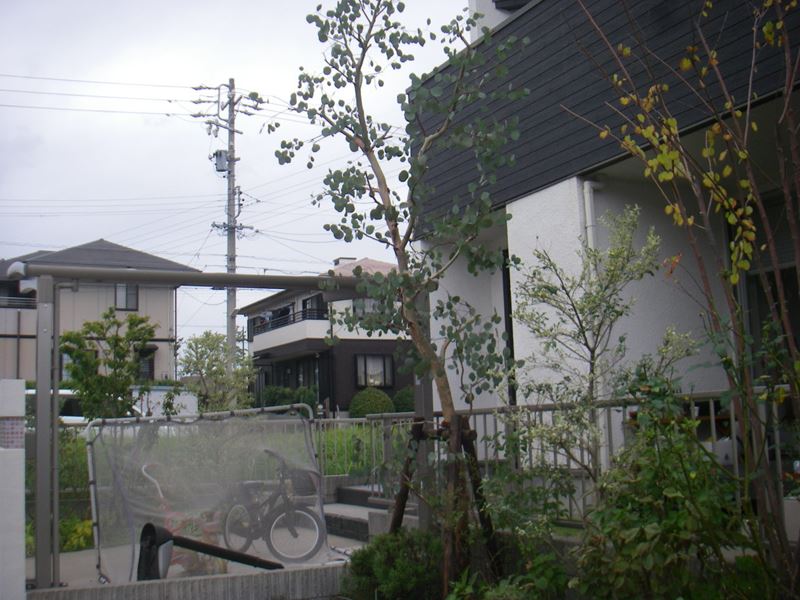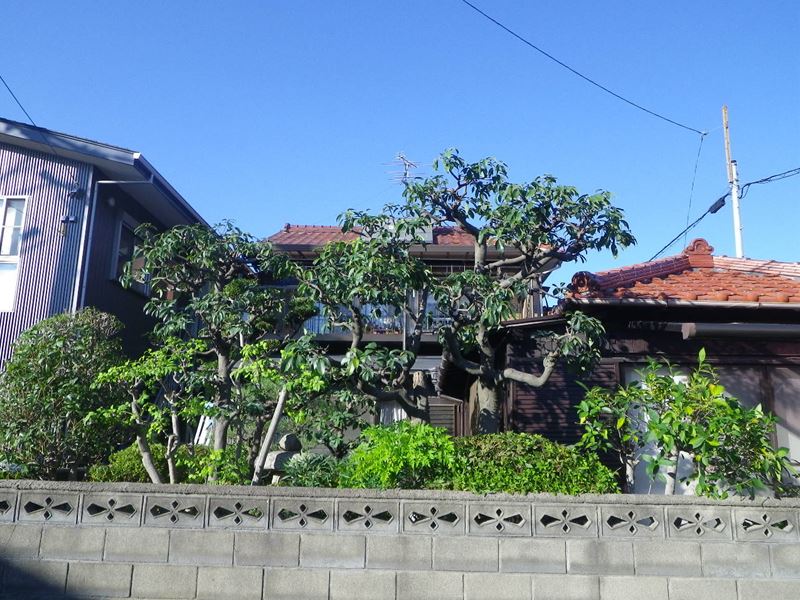 民家寄りの樹木は伐採して、カキの木も雨どいより低くしました。