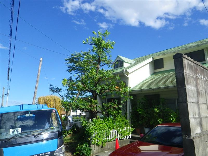 地境より控えて高木の剪定です。 ムクノキですのでとても大きくなります。