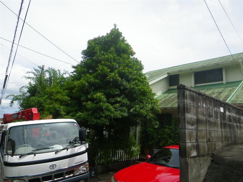 建物周辺に防犯カメラを設置することで、ウバメガシが邪魔になり撤去を依頼されましたが、