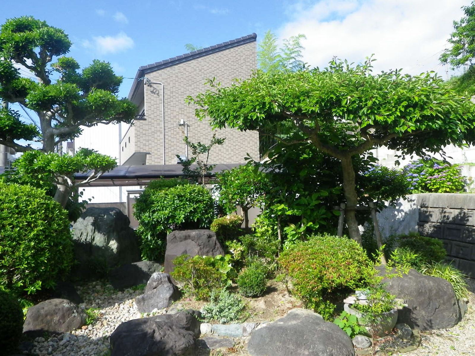 樹木はお客様が剪定して、芝刈を当社に依頼していただきました。