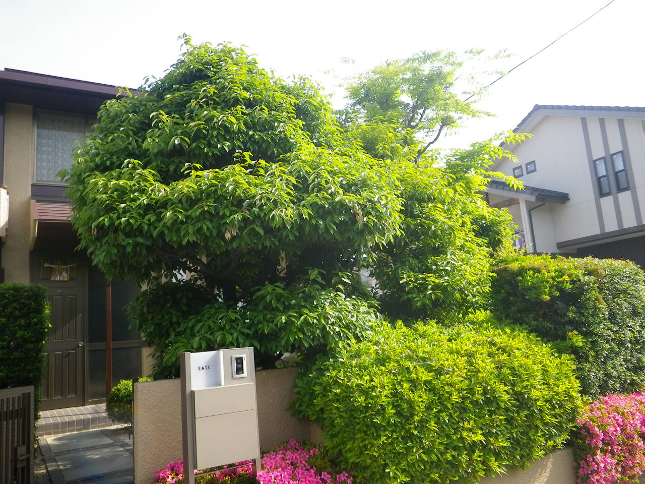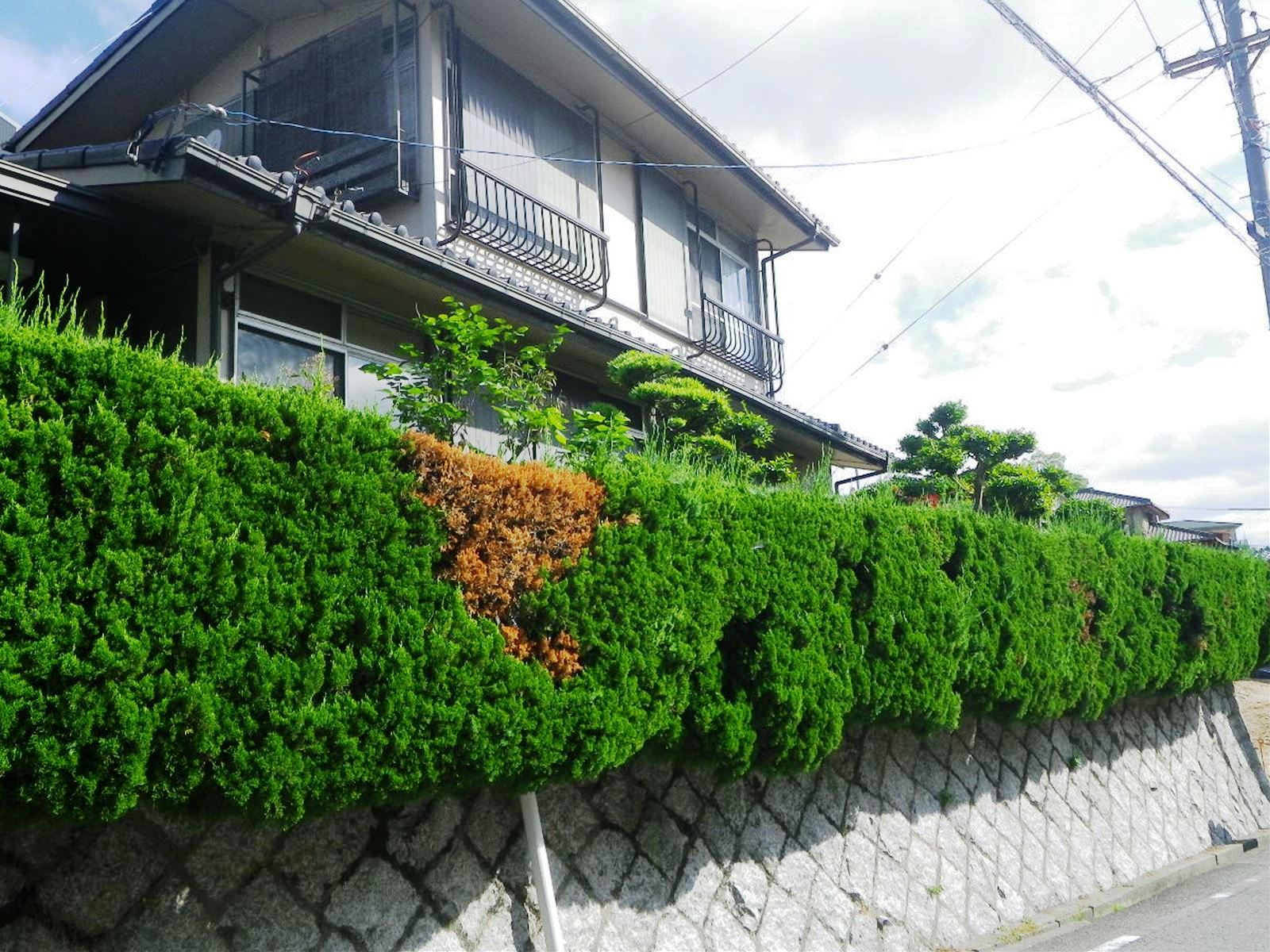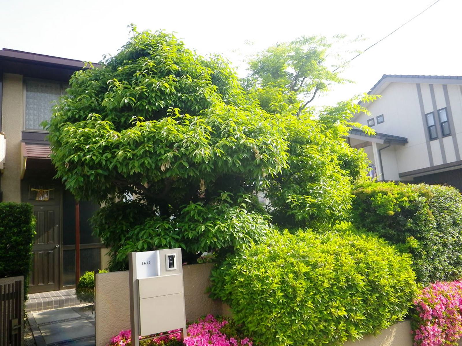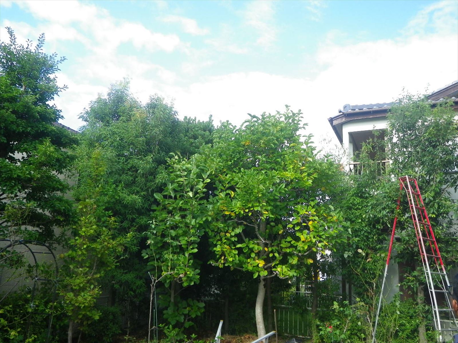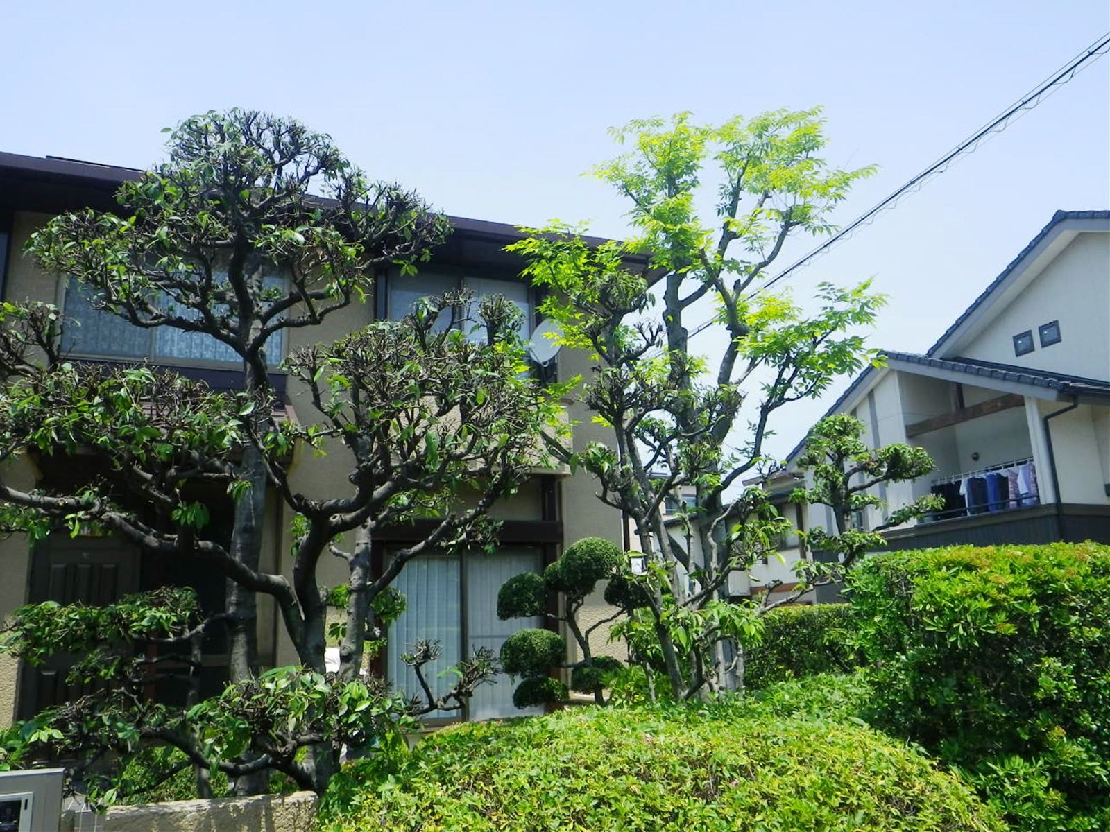 半田市内で樹木の剪定を行いました。 隣に枯れ葉が落ちるのが気になっていて、
