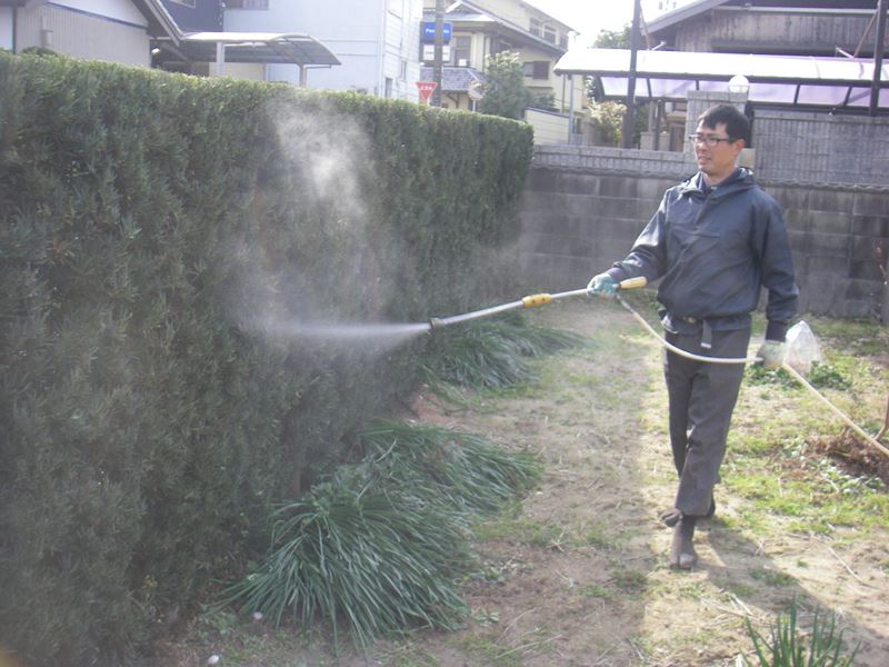 (このマシン油乳剤は害虫の呼吸を塞ぐことにより窒息させて駆除するもので、