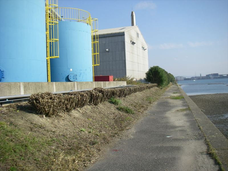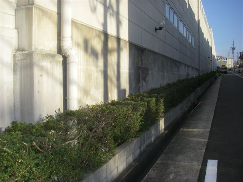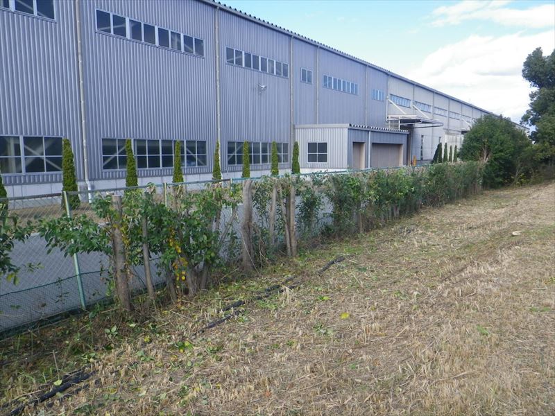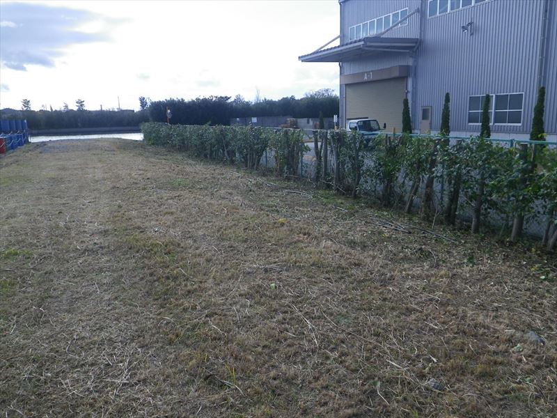 近隣の工場に伸びた枝が入らないように注意しました。