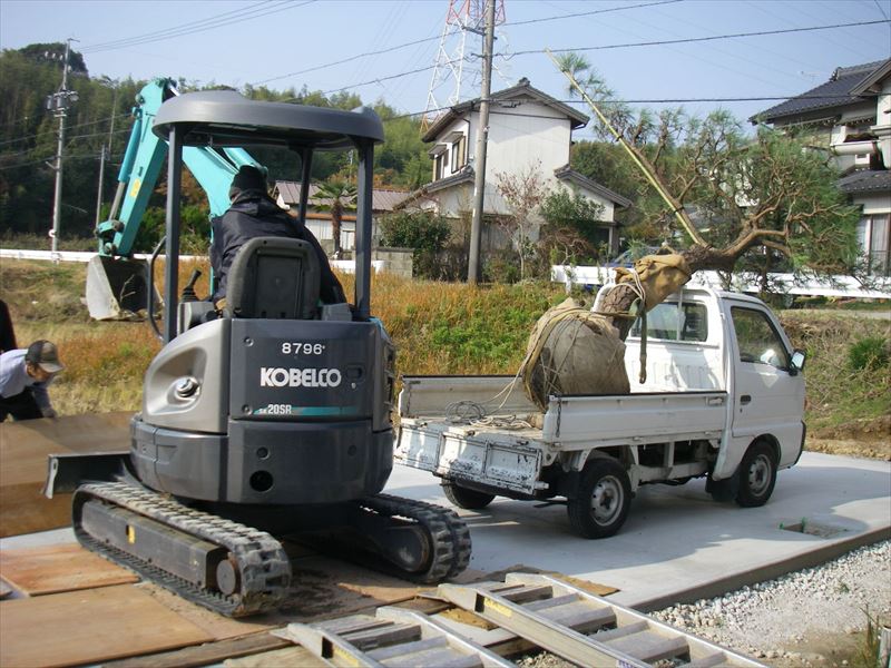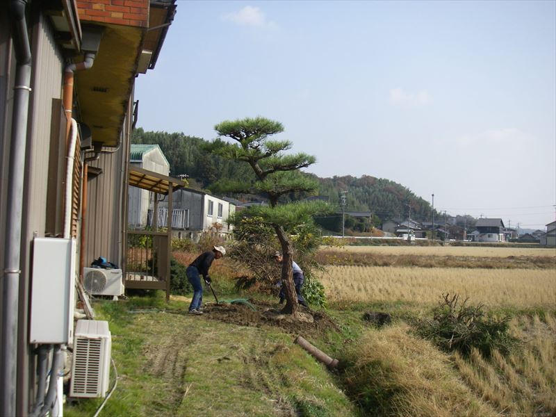 思い出の樹木を枯れないように、注意をはらい掘り取りです。