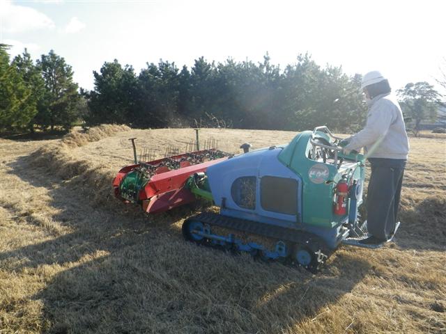広い場所をハンマーナイフモアで草刈をして、集草機で草を集めました。