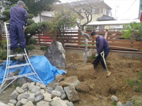 まだ、作って5年くらいの庭でしたが、敷地内に新築の家を建てる為、庭の縮小することになりました。